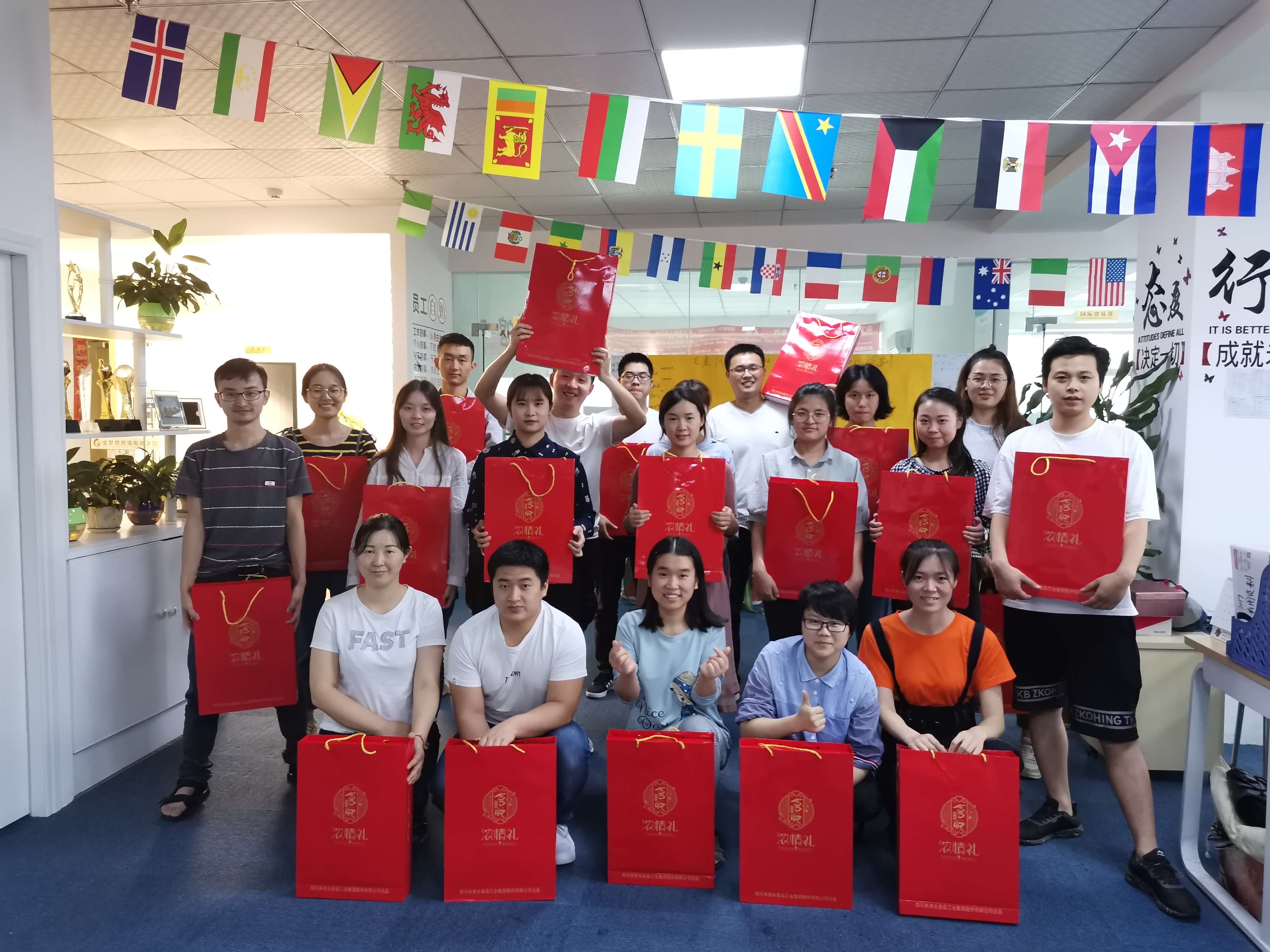 下面是我们市场部领取福利合影